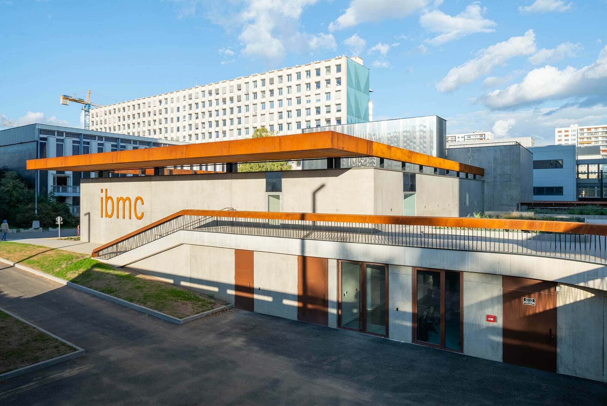 L’extension s’adosse au bâtiment existant de l’IBMC datant du début des années 70, en plein cœur du campus central de l’Université de Strasbourg, dit Campus de l’Esplanade. Un « bâtiment – repère » connu de toute la communauté universitaire ; cubique, aux façades grises rigoureusement tramées, il est envahi d’une vigne vierge qui le métamorphose au gré des saisons, passant du vert profond au rouge étincelant.